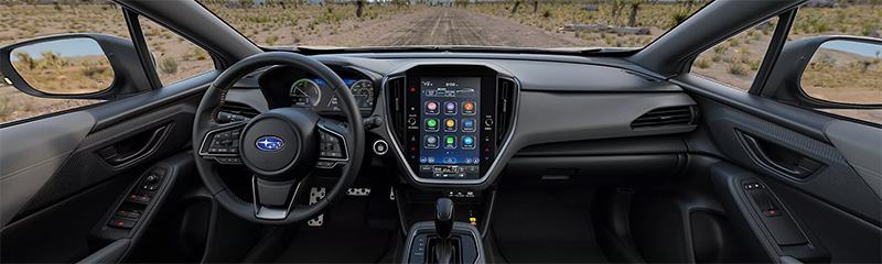 Symmetrical All-Wheel Drive is standard on the hybrid and remains a defining advantage. The calibration is tuned to preserve the natural, balanced feel that makes the Crosstrek reassuring in mixed conditions. Torque is apportioned proactively, not only after slip is detected, so the vehicle pulls away cleanly on wet or slushy surfaces. X-MODE is available with Snow/Dirt and Deep Snow/Mud settings that adjust throttle mapping, traction thresholds, and brake interventions for low-grip scenarios, while Hill Descent Control helps maintain a steady pace on steep, loose downhills. Ground clearance for the hybrid is 8.7 inches, approximately 221 mm, which helps when ruts, snow rills, or campsite approaches are on the agenda.